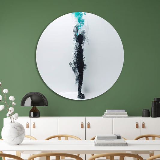 Silhouet in rookachtige abstracte vormen aluminium muurcirkel