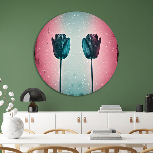 Abstracte tulpen tegen kleurrijke achtergrond aluminium muurcirkel