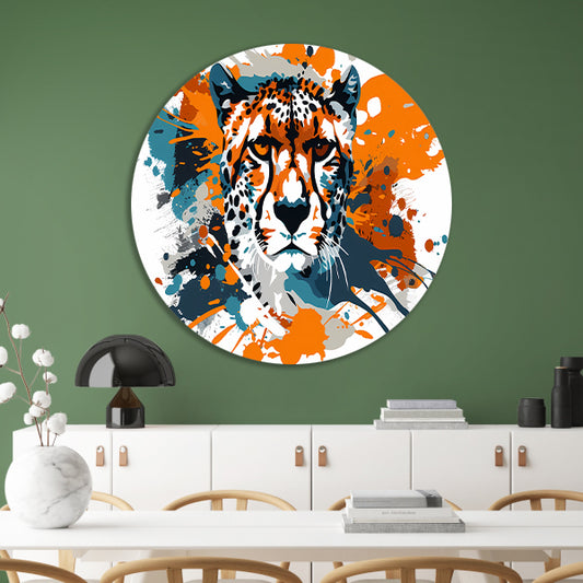 Dynamische abstracte cheeta schilderij print aluminium muurcirkel