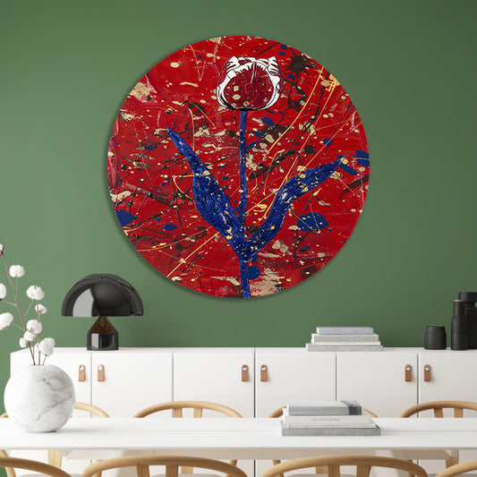 Abstracte tulp met dynamische verfspetters aluminium muurcirkel