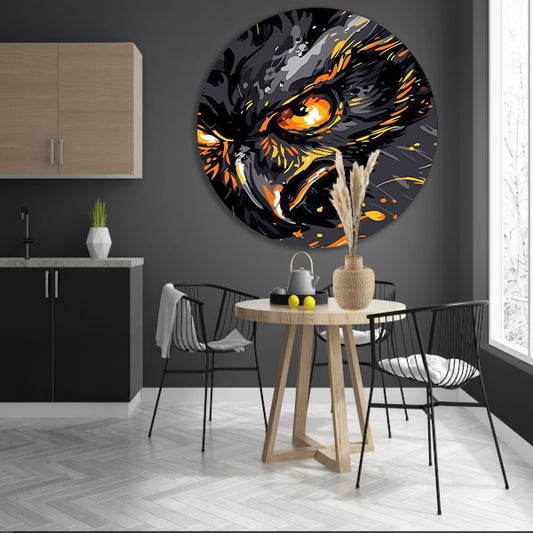 Dynamisch abstract portret van een uil aluminium muurcirkel