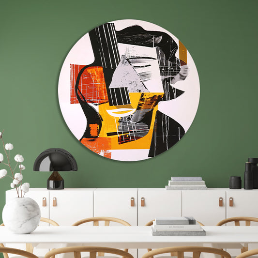 Kubistische Gitarist in Kleurrijk Interieur aluminium muurcirkel