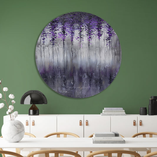 Mystieke abstracte bomen in mistige tinten aluminium muurcirkel