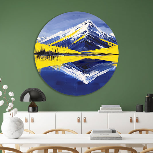Surrealistisch berglandschap met reflectie in water aluminium muurcirkel