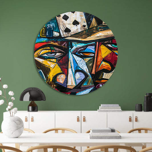 Abstract Portret Kaartspeler aluminium muurcirkel