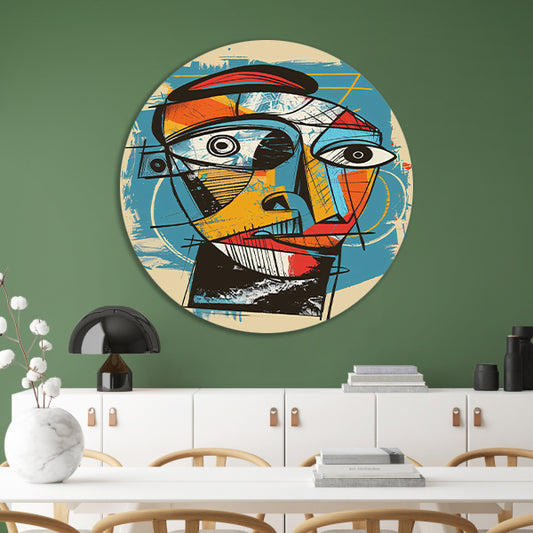Kubistisch portret in levendige kleuren aluminium muurcirkel