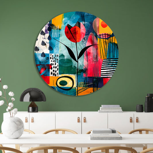 Abstracte tulpenkunst met regenmotief aluminium muurcirkel