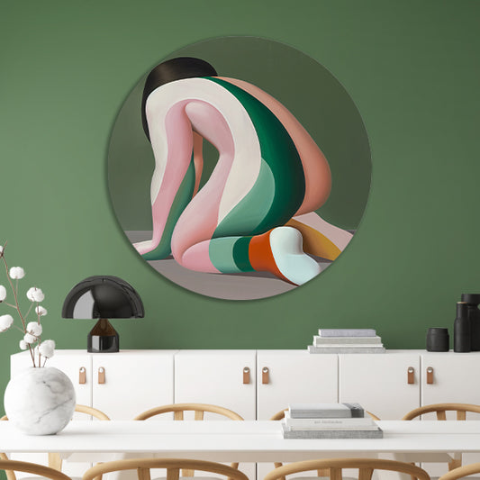 Abstract Vrouw in Gekleurde Strepen aluminium muurcirkel