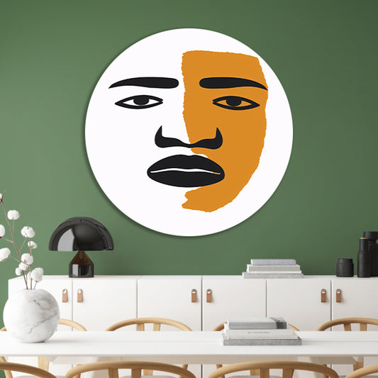 Abstract portret met contrasterende vlakken aluminium muurcirkel