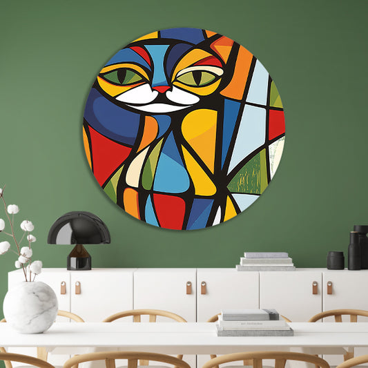 Kleurrijke geometrische kat illustratie kunstwerk aluminium muurcirkel