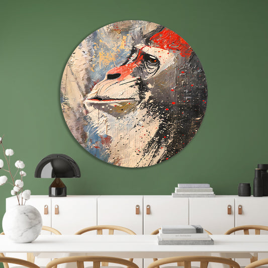 Kleurrijk abstract schilderij van een aap aluminium muurcirkel