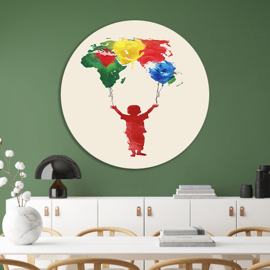 Kind houdt de wereld vast als ballonnen aluminium muurcirkel