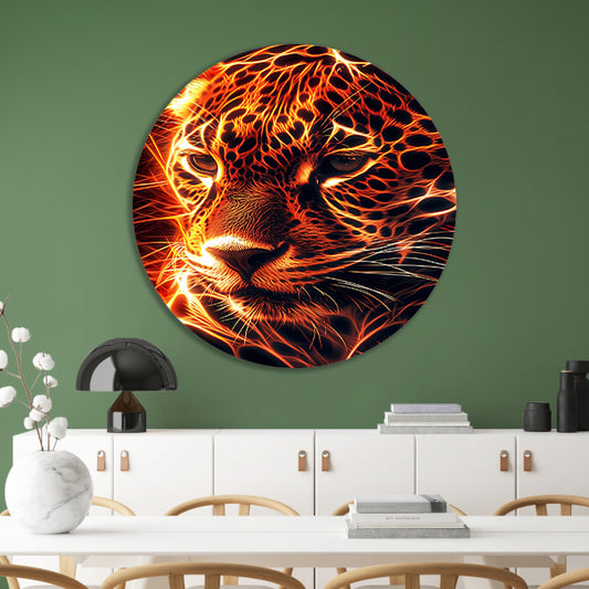 Vurige digitale kunst van majestueuze jaguar aluminium muurcirkel