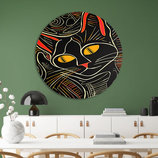 Kleurrijke lijntekening van een kat aluminium muurcirkel