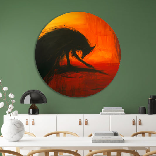 Abstract schilderij van een wolf in kleur aluminium muurcirkel
