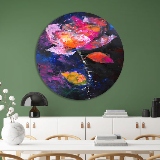 Abstract kleurrijk schilderij van een roos aluminium muurcirkel