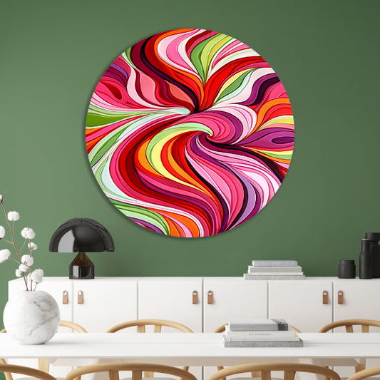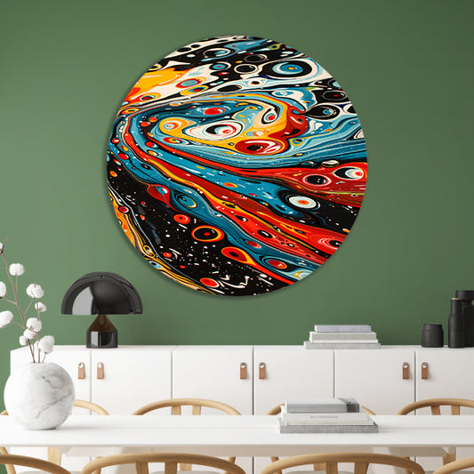 Kleurrijke abstracte wervelingen in levendige tinten aluminium muurcirkel