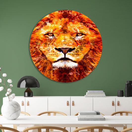 Schilderij van kleurrijke leeuw in close-up aluminium muurcirkel