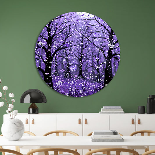 Betoverend paars bos met vlinders aluminium muurcirkel