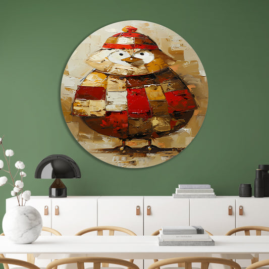 Kleurrijke abstracte vogel met hoed schilderij aluminium muurcirkel