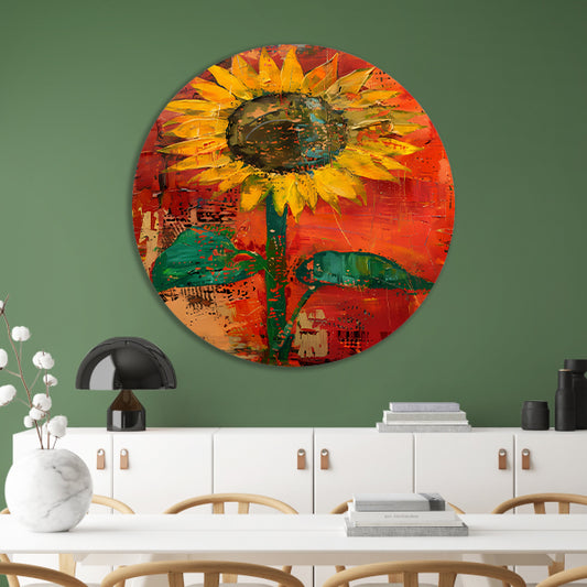 Abstracte zonnebloem schilderij met levendige kleuren aluminium muurcirkel