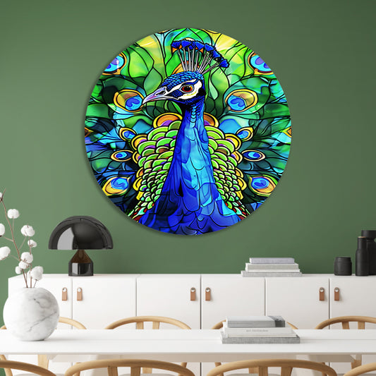 Kleurrijke abstracte pauw met veren aluminium muurcirkel