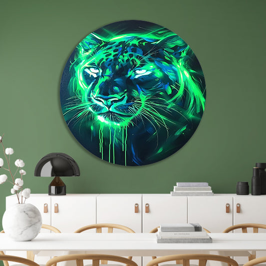 Fluorescerende panter in abstracte kleuren aluminium muurcirkel