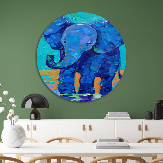 Kleurrijk abstract schilderij van een olifant aluminium muurcirkel