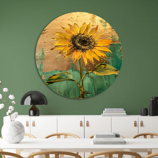 Prachtige zonnebloem in gouden en groene tinten aluminium muurcirkel