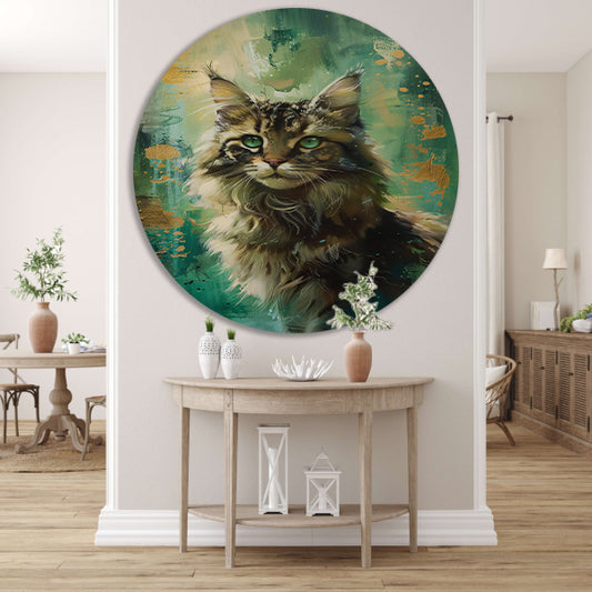 Elegante kat met kleurrijke achtergrond aluminium muurcirkel