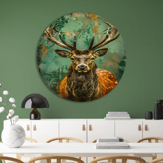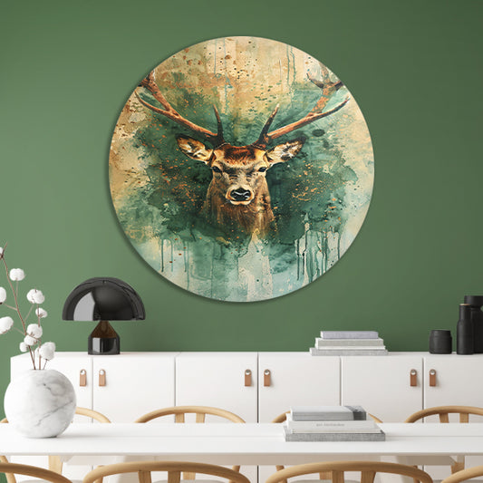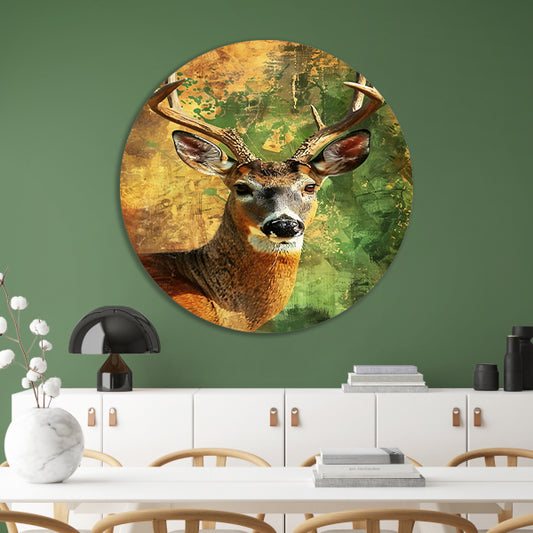 Dynamisch hertenportret met abstracte achtergrond aluminium muurcirkel