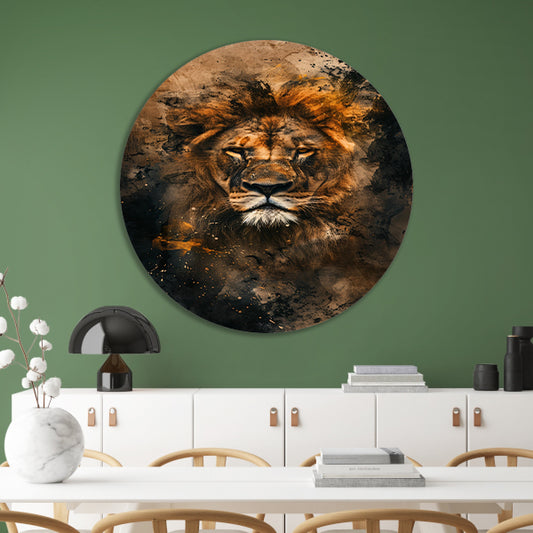 Abstract portret van leeuw in rustieke stijl aluminium muurcirkel