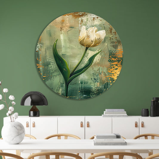 Witte tulp in abstracte expressieve olieverf aluminium muurcirkel