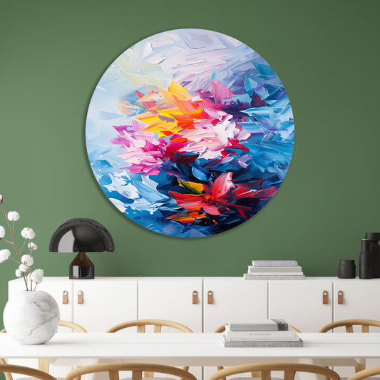 Abstract kleurrijk schilderij van bloemen aluminium muurcirkel
