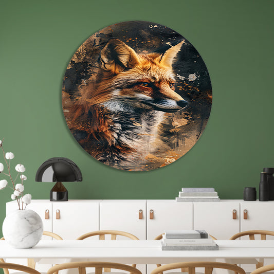 Mysterieuze vos in dynamische rustieke stijl aluminium muurcirkel