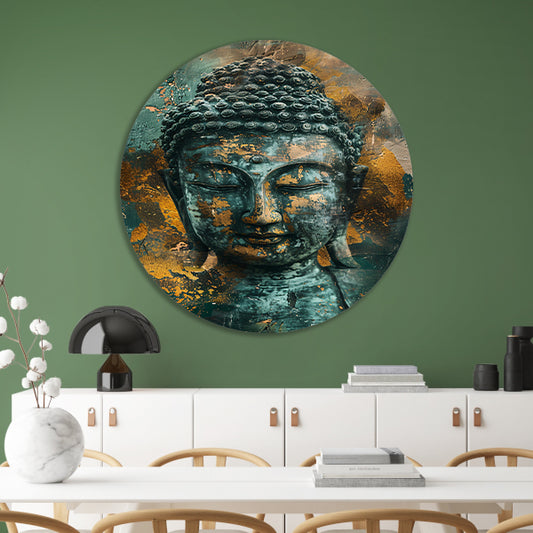 Mysterieuze Boeddha in rustieke stijl aluminium muurcirkel