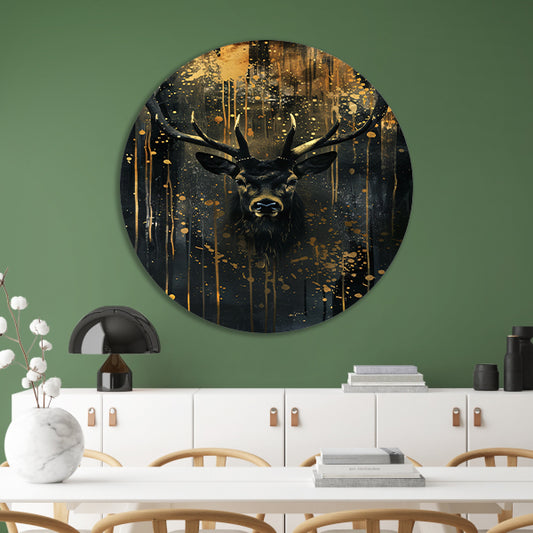 Mysterieuze hert met gouden accenten aluminium muurcirkel