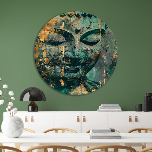 Mysterieuze Boeddha in rustieke kleuren aluminium muurcirkel