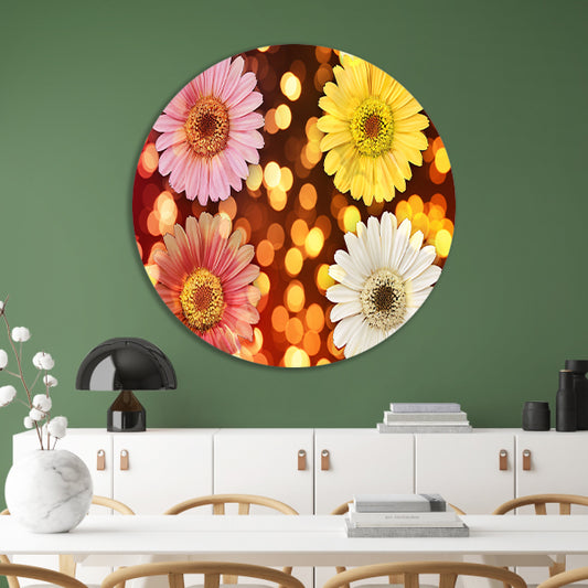 Kleurrijke bloemen met sprankelende lichten achtergrond aluminium muurcirkel