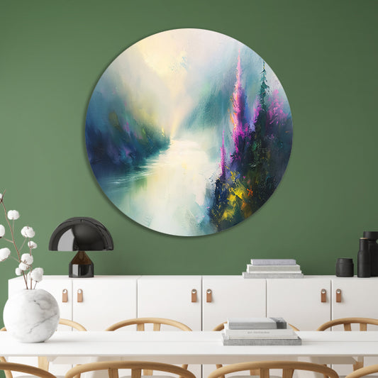 Abstract landschap met kleurrijke bloemen aluminium muurcirkel