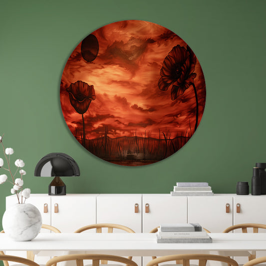 Abstracte warme bloemen kunstwerk schilderij aluminium muurcirkel