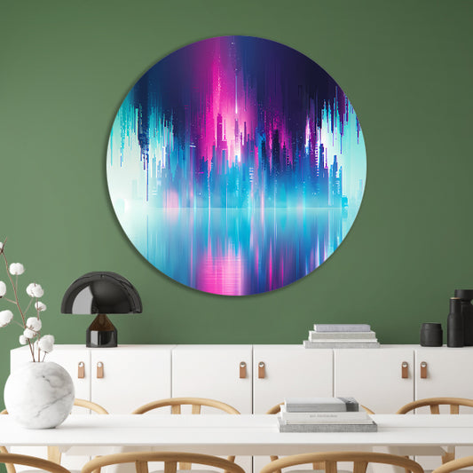 Futuristische skyline met kleurrijke reflecties aluminium muurcirkel