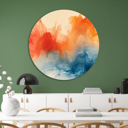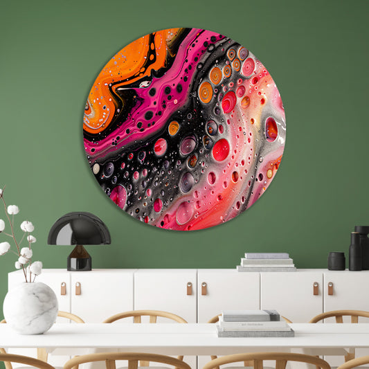 Abstract kunstwerk met levendige kleurencombinatie aluminium muurcirkel