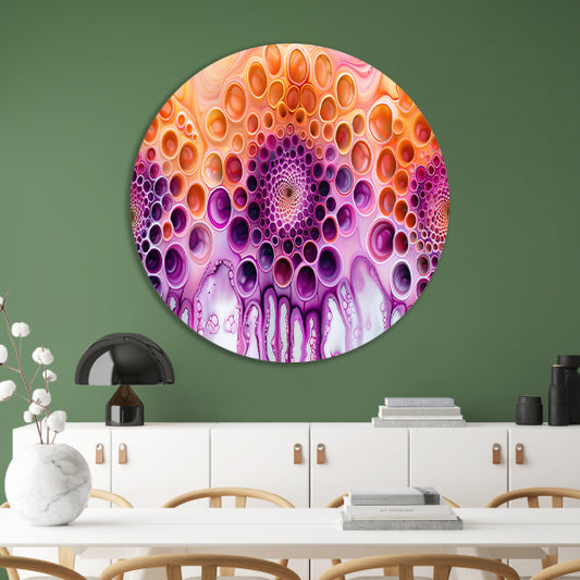 Kleurrijke psychedelische abstracte patronen schilderij aluminium muurcirkel