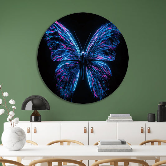 Neon vlinder kunst in levendige kleuren aluminium muurcirkel