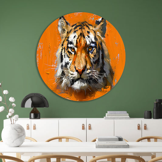 Abstract schilderij van een tijgerportret aluminium muurcirkel
