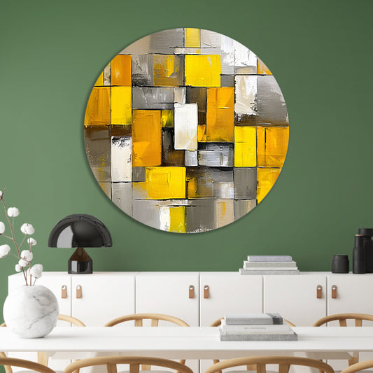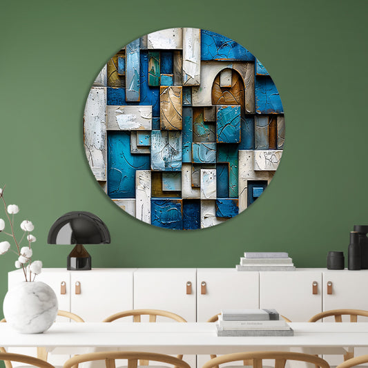 Abstract schilderij met rechthoeken en cirkels aluminium muurcirkel