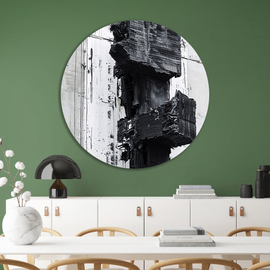 Abstract zwart-wit schilderij met texturen aluminium muurcirkel
