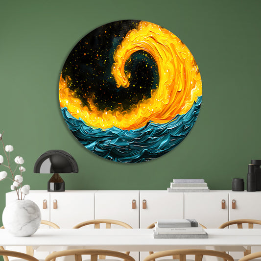 Abstracte schildering van vuur en water aluminium muurcirkel