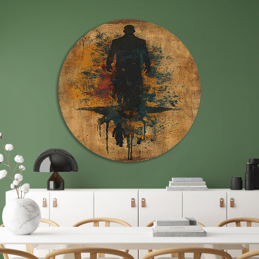 Zwarte figuur met Kleurrijk verfspatten aluminium muurcirkel